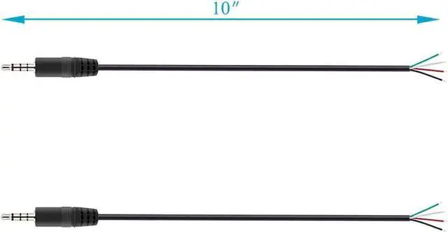 Package contents: 2-Pack 10 inch 2.5 mm stereo trrs male plug jack to bare wire repair audio cable.