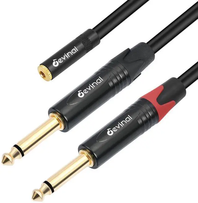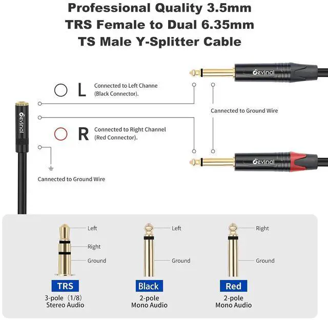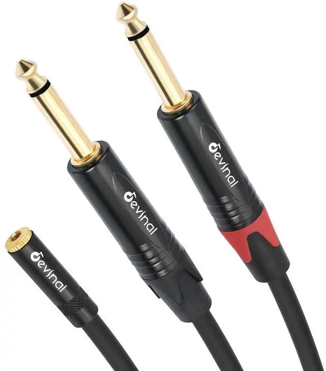 Perfect Connection This cable is designed to split a stereo signal. Black- and Orange-coded mono phone plugs indicate left and right respectively. Usage No headphone output Merge two mono 1/4 outputs into a stereo signal for your headphones' 1/8 stereo plug thanks to this dual TS to TRS Devinal adapterBi-Directional Dual 1/4 or 3.5 mm could all be the audio input. In another words it both works from Dual 1/4 to 3.5 mm & from 3.5 mm to Dual 1/4. Excellent Sound Top quality Flexible Rubber Jacket design by italy and made by environment-friendly material improves high quality signal transfer.