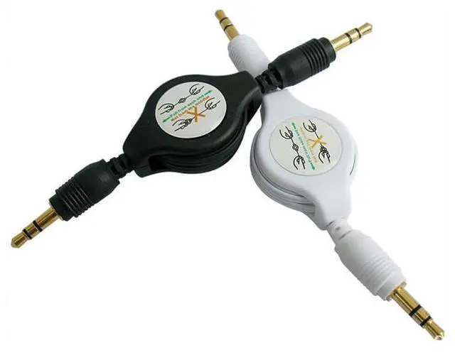 Package: 2x 3.5 mm Retractable Aux Audio Cable 1x black 1x whiteDescription: Mp3 Retractable Stereo Auxiliary Car Cable 3.5 Male to Male 3.5 mm