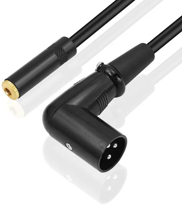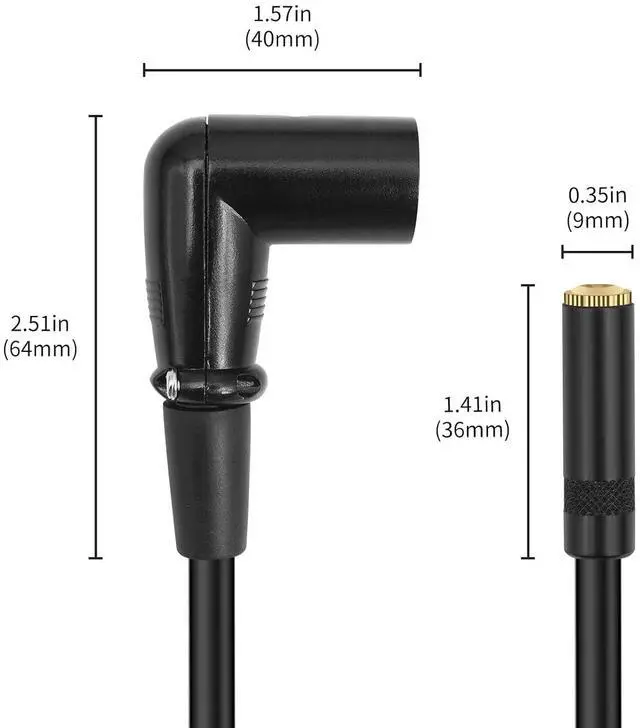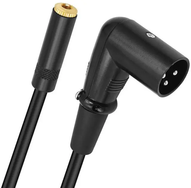 Product Material: The 3.5 mm female connector housing is made of aluminum alloy with a black baking varnish finish and the connector is gold-plated copper. The XLR male connector features a zinc alloy housing with a 90-degree bend and its connector is nickel-plated copper. The connecting cable is a double-shielded type (aluminum foil + braided shielding) with a cable diameter of 6mm.
