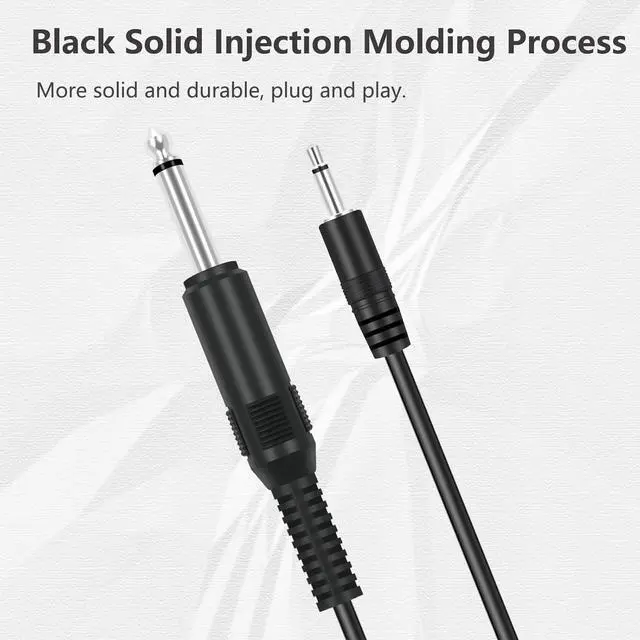 This 3.5 mm male mono to 6.35 mm male mono audio cable is made of high quality PVC material. The 3.5 mm plug and rca jack connector comes with black solid injection molding process more solid and durable plug and play.