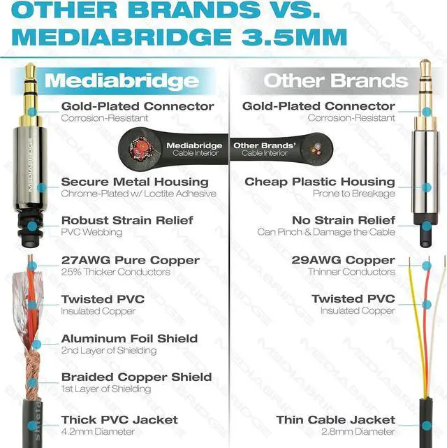 SOUND QUALITY: Its not what it looks like its about what on the inside. Compare our build quality to others. Pure copper conductors allow for premium transmission and sound quality. (7) 0.12 mm copper strands with aluminum foil shielding with an added layer of copper braided shielding to others. See our specification sheet for more.