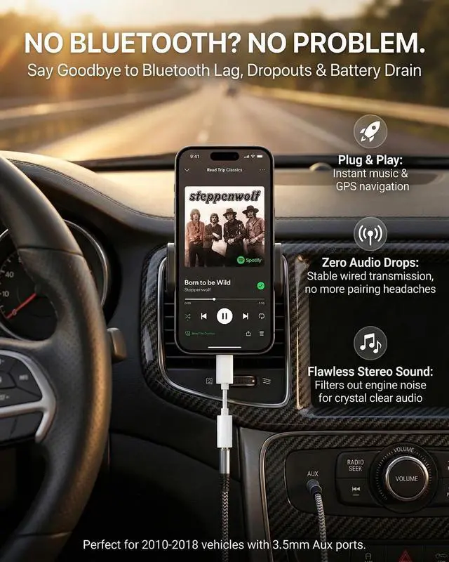 & Newer Androids: Requires a USB-C to 3.5 mm adapter (not included). Ideal for older iPhones Galaxy and tablets[CASE-FRIENDLY STEP-DOWN DESIGN] Thoughtfully designed with a beveled step-down connector this 3.5 mm audio cable fits perfectly into your devices even with heavy-duty phone cases on. No need to repeatedly remove your case just to plug in your aux cord. Enjoy a secure and snug fit every time[TANGLE-FREE & EASY STORAGE] Say goodbye to frustrating cable nests in your car console or backpack. Designed perfectly as an aux cable for car its premium braided exterior naturally resists knotting and coiling making it incredibly easy to roll up and store when not in active use[ZERO LATENCY FOR GAMING & DJing] When split-second timing matters wireless just doesn't cut it. Swap out your flimsy headphone wire for this dedicated headphone cable to get absolute zero latency and uncompressed audio transmission. It is the reliable analog choice for competitive esports gaming setups studio monitoring and live DJ mixers[ UNBEATABLE VALUE & 3-YEAR GUARANTEE] Audiophile quality at a fraction of the retail price. You get a high-end 3.5 mm cable without the big-box store markup.