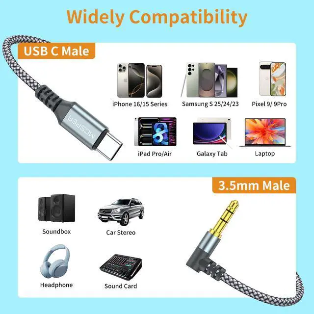 Audio Quality: This USB Type C to 3.5 mm aux cable includes built in newest powerful analog converter ensuring stable and lossless sound transmission of audio signal and the USB C to 3.5 mm Audio Jack Adapter has clear and stable sound quality provide flawlessly music transmission and clear HIFI sound qualityEnhanced