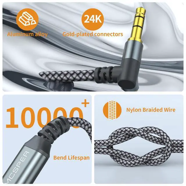 90 degree right angle: 3.5 mm stereo cable with right angled connector allows you to connect to tight spaces and hard to reach areas where a normal straight connector is unavailable.