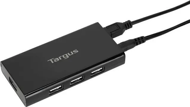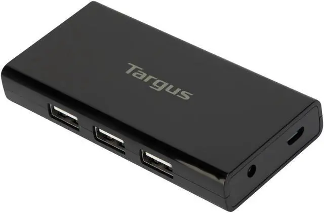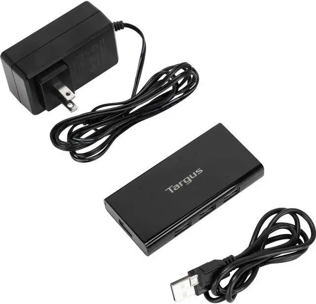 Turn one USB port into seven with the Targus USB 2.0 7-Port Powered Hub. Simply plug in up to seven peripherals in the USB ports and connect the tethered USB cable into your computer's USB 2.0 port. Plug in the provided 5V3A AC adapter to ensure maximum output. Compact and lightweight, it's easy to take it along with you anywhere you go.