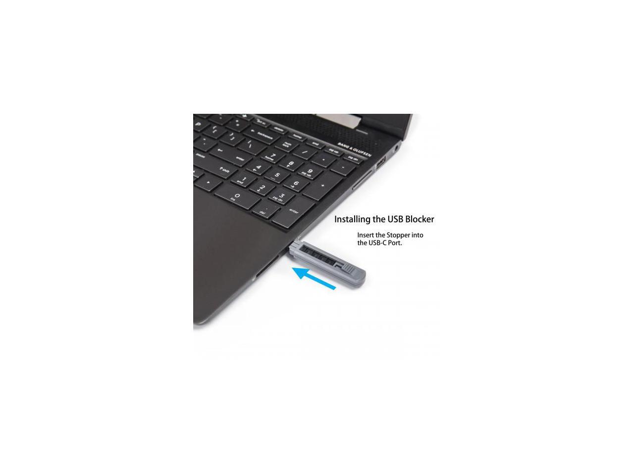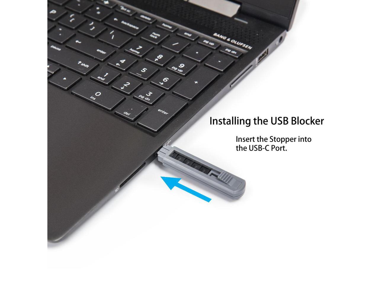 Physically blocks the USB-C Ports to deny access to the USB-C Ports
