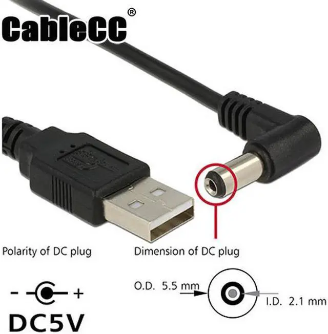 USB 2.0 A Type Male to 5.5 x 2.1 mm DC 5V Power Plug Barrel Connector Charge Cable