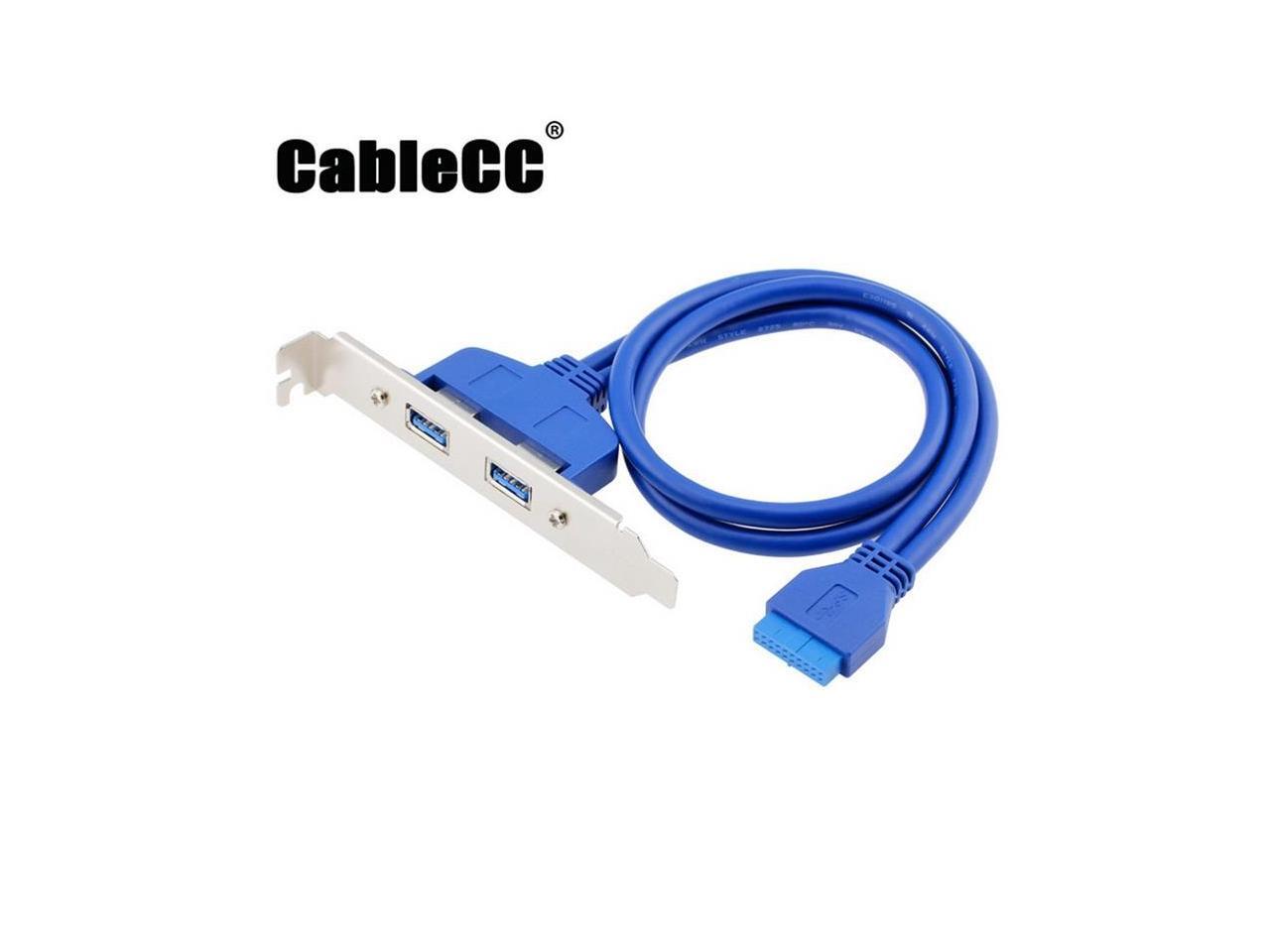 Cablecc Internal 2Pin USB 3.0 Female Mount panel to Motherboard 20pin cable with PCI bracket