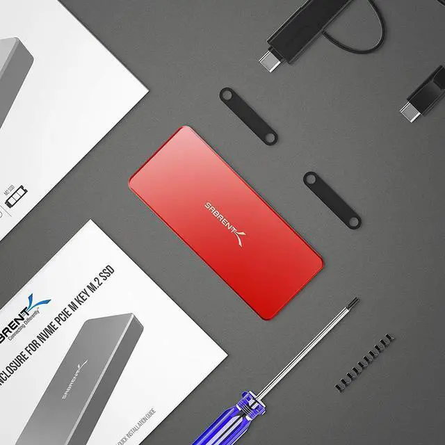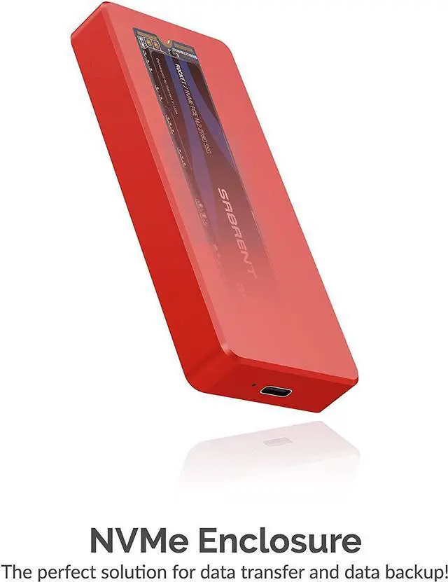 The Sabrent USB Type-C Aluminum Enclosure for M. 2 NVMe SSD in Red is the ultimate solution for your enclosure needs! FEATURES NVMe Enclosure - The adapter uses the latest chipset of USB 3.1 Gen2 to PCIe lane bridge controller. Achieving 10Gbps USB data transfer from your NVMe SSD to host PC, MacBook and NAS disk station. Pushing USB 3.1 Gen2 to its limit, R/W speed up to 850-1020MB/s with most NVMe. Backward compatible with USB 3.1 Gen1 and USB 3.0. Plug & Play, No extra drive required. Solid Aluminum - 9 mm Radiating Advanced Aluminum alloy shell that increases the thermal conductive silicone's conductivity.