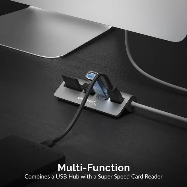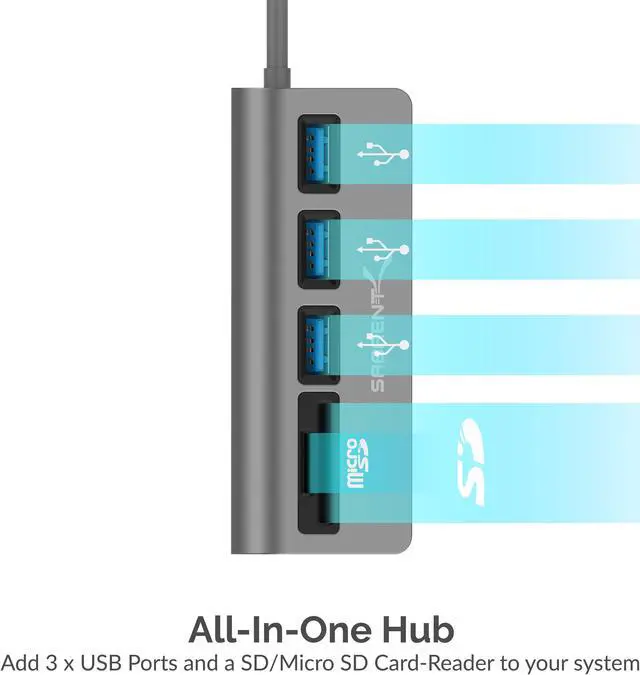 Features: Transfers your data at up to 5Gbps. Plug & Play, Hot-Swappable. Built in All-in-One Card Reader for flash memory cards. 3 USB 3.0 Type? A ports for data transfer up to 5Gbps. Card reader support, SD/SDHC, Micro SD (T-Flash).