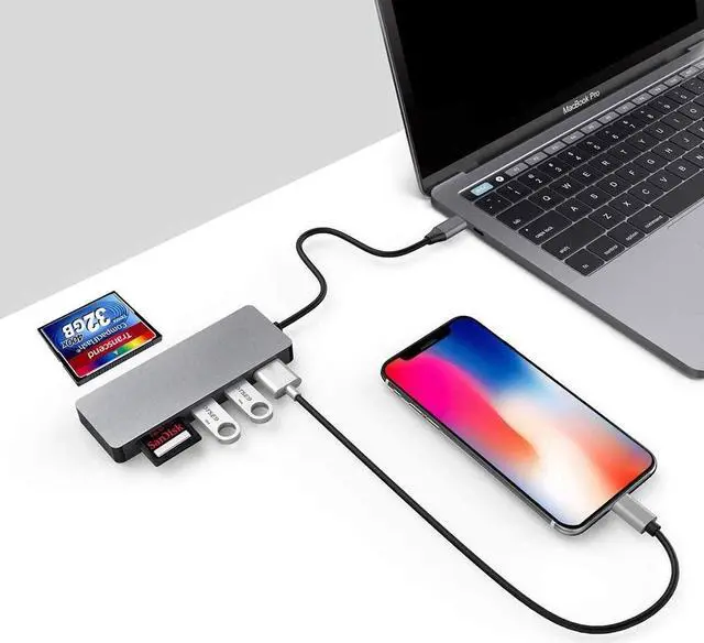 HYD-9825T expands 3 USB3.0 ports, CF+SD+TF card reader, adopts Taiwan high-quality chip, perfectly supports Mac Book, has long-lasting working ability and safe and stable transmission performance, and its user-friendly design can make your Mac Book is more convenient to use.