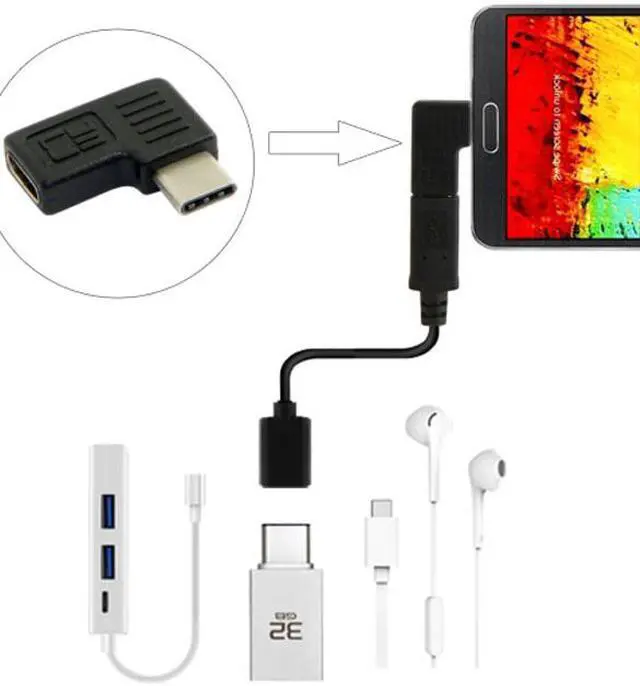 90 Degree Right & Left Angled USB 3.1 Type-C Male to Female Extension Adapter for Laptop & Tablet & Mobile Phone UC-214-RI