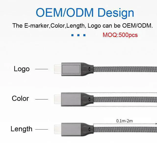 10Gbps USB-C USB 3.1 Type C Male to Male Data Video Cable with E-marker for Tablet & Phone & Laptop With E-marker chip inside Support Type-C Gen2 10Gbps Data, Video, Audio. Support 100W Scalable power charging