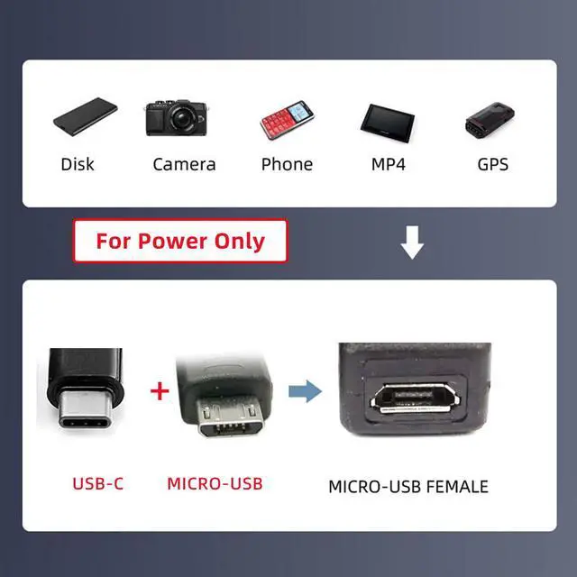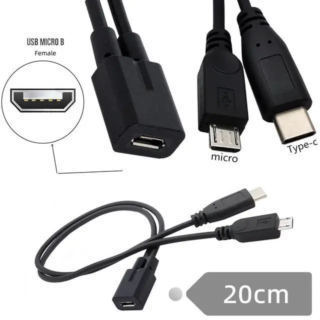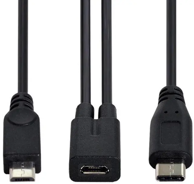 Micro USB Female to USB-C Type C USB 3.1 & Micro USB Male Splitter Extension Charge Cable