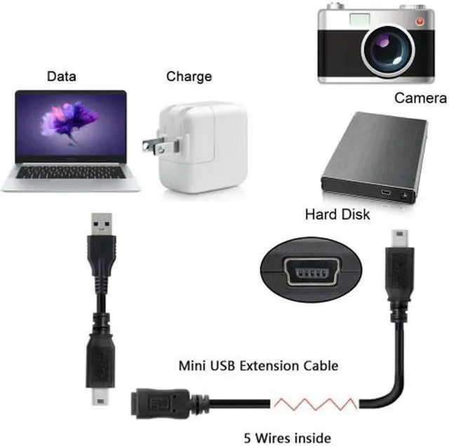 High quality Original Mini USB 5Pin Male to Female extension cable