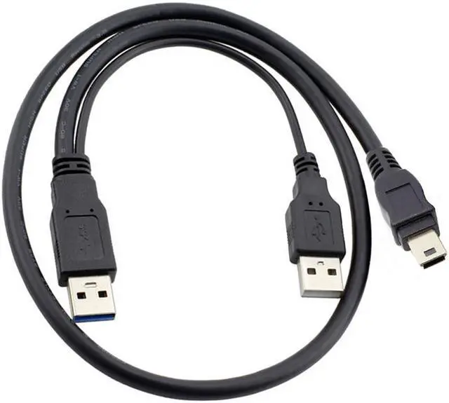 USB 2.0 Dual two A type Male to Mini 5-Pin male Y Cable, for Hard Disk Drive Case