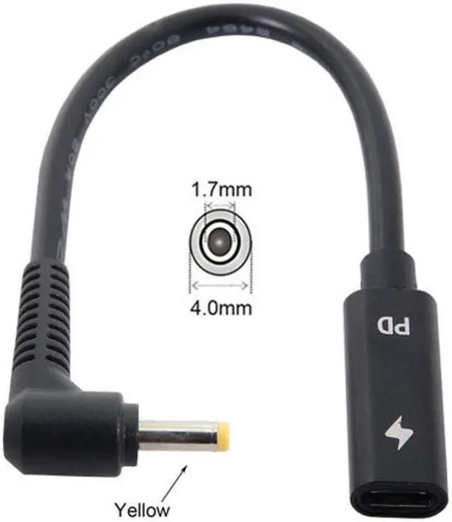 Type C USB-C Female Input to 4.0 * 1.7 mm Cable fit for Laptop 18-