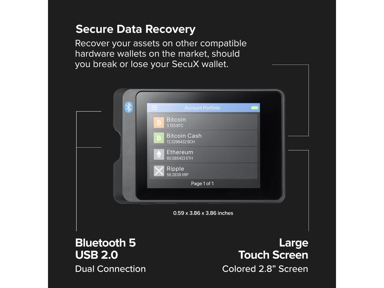 SecuX W20 Crypto Hardware Wallet- Infineon CC EAL5+ Secure Element, Bluetooth, Cross-platform, 2.8" Color Touchscreen; BTC, ETH, BNB, BSC, ADA, XRP, DOGE, BCH, LTC, XLM; ERC-20/TRC-10,20/BEP-20 Tokens