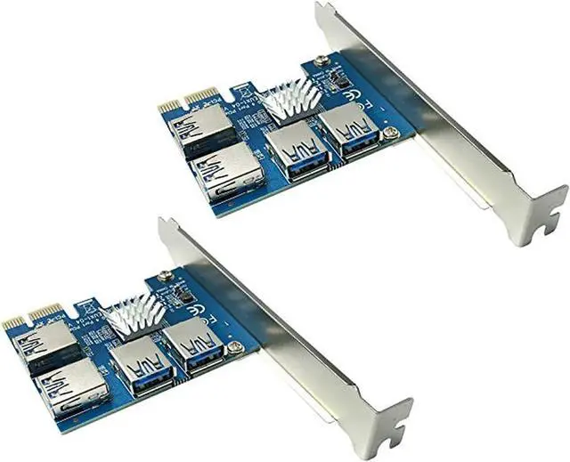 AAAwave PCI Express 1X to 16X Riser Card 1 to 4 USB3.0 Multiplier Hub Adapter Pack of 2