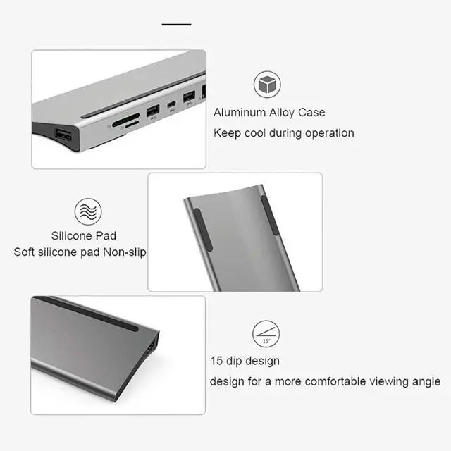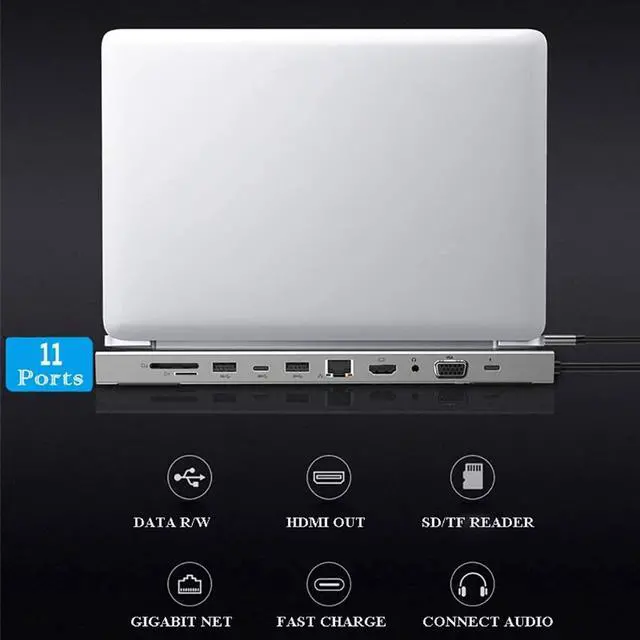 UBC Type C Hub Laptop Docking Station 11 in 1 Switch RJ45 Gigabit Ethernet Port HDMI VGA SD TF PD For Surface MacbookUSB C Docking Station Specifications: