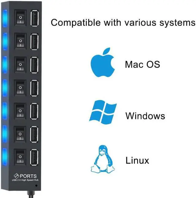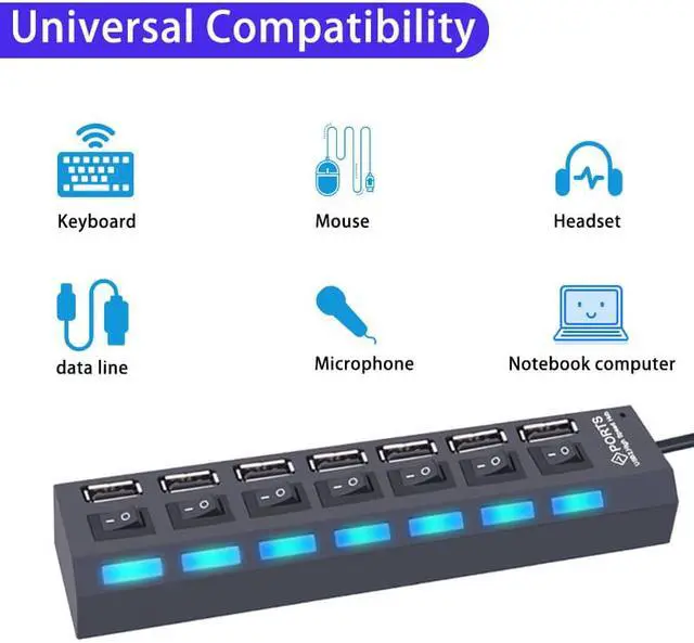 Product Option:Color:7 port Black.Contact with us if you need other option.