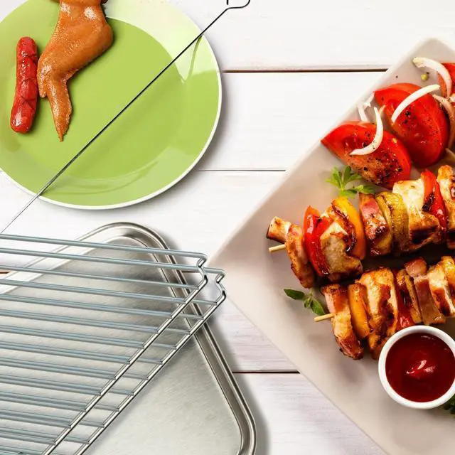 - Includes rotisserie forks and skewers, 1 rotating kebob rack, 2 bake grill racks, 1 bake pan, and 1 drip tray pan to accommodate all purposes