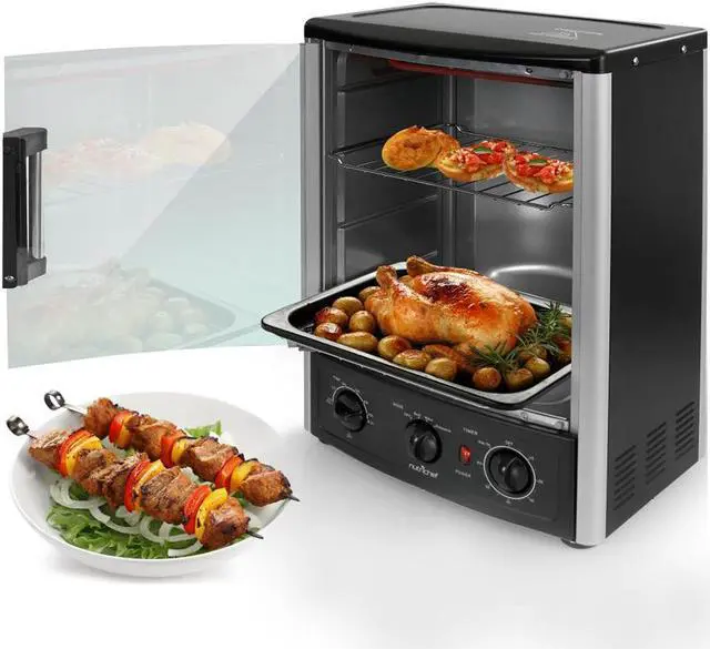 - Multi-functioning, vertical convection oven cooker possesses the capability to bake, roast, broil, and rotisserie