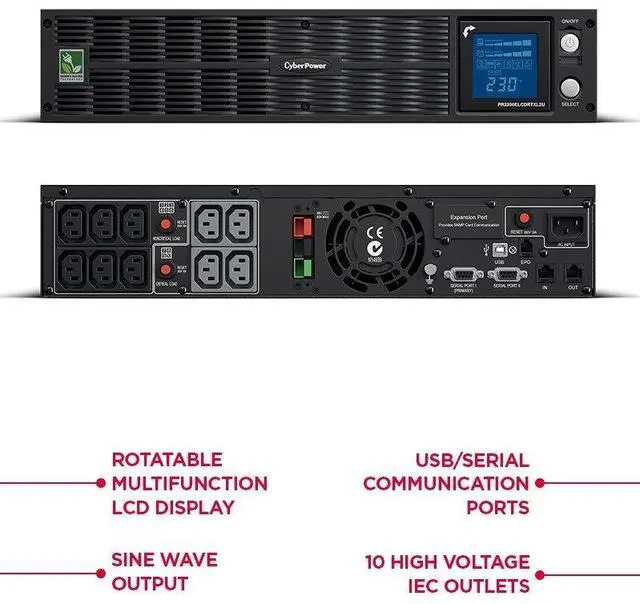 CyberPower 2200 VA Line Interactive UPS - 2200 VA/1650 W - 220 V AC_ 230 V AC_ 240 V AC - 5 Minute - 2U Tower/Rack Mountable - 5 Minute - 1 x IEC 60320 C19_ 9 x IEC 60320 C13