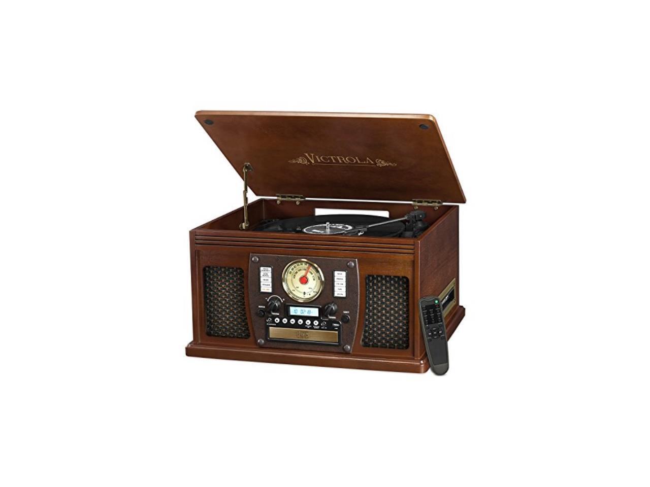 victrola nostalgic aviator wood 8in1 bluetooth turntable entertainment center, espresso