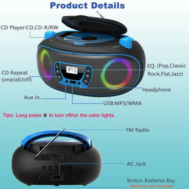 If you are distressed about what to buy for your parents, grandparents, uncles, aunts, kids, or friends, this portable CD player boombox with FM stereo radio is the best choice for you.