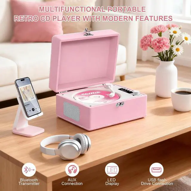 Retro-Modern DesignCrafted with a premium wood, this cd record player blends vintage charm with contemporary style. The dust cover protects your player while doubling as a sleek home decor piece. CD Player with suitable size can be placed in any corner of the home, such as the living room, bedroom, office.