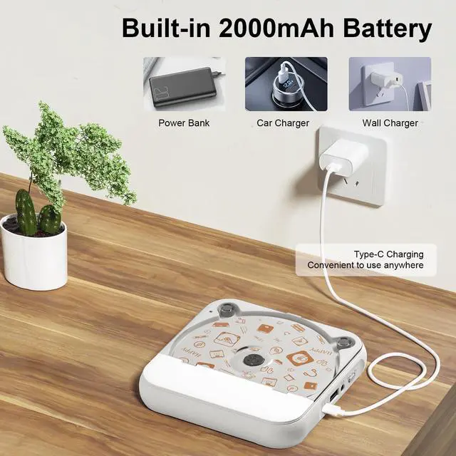 Built-in 2000mAh Rechargeable Battery, convenient to take it anywhere