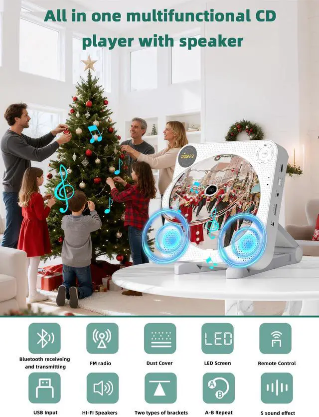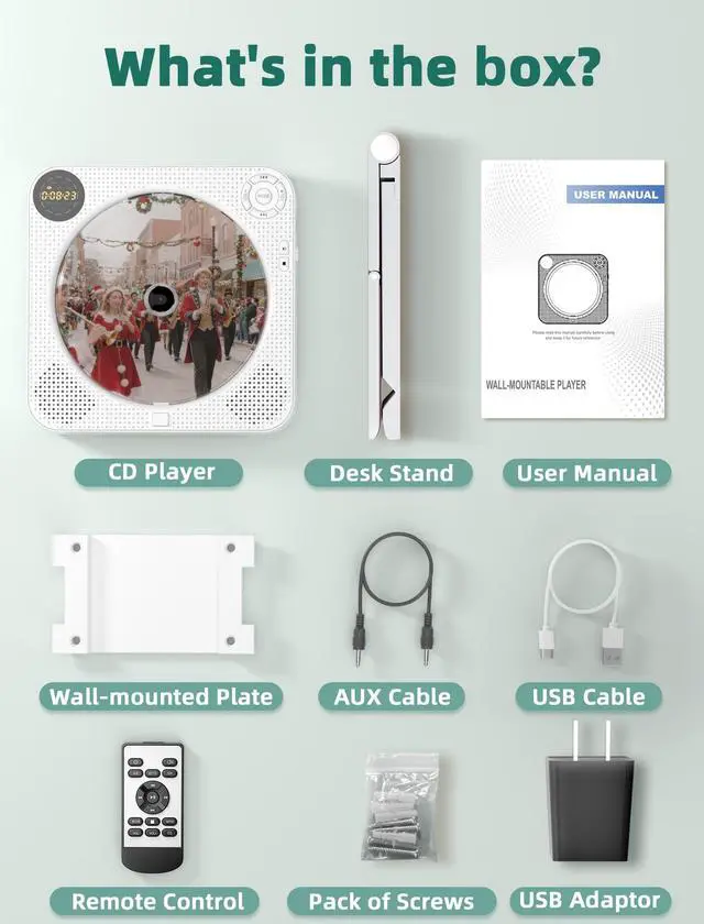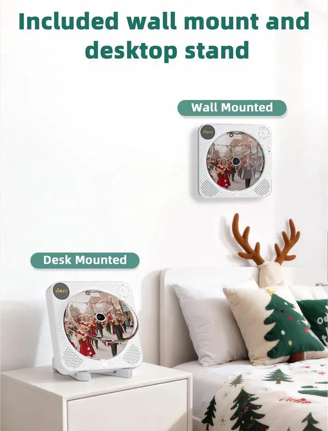 The screen on the front of the wall CD player allows you to easily see the numbers of your choice, whether placed on a table or mounted on a wall. You don't need to bend over, turn sideways, or take the device off the wall to see the screen.The front display of the FELEMAN wall mountable CD player is very considerate for people with waist injuries.