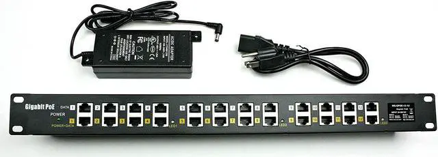 12 Port Gigabit PoE Injector with 48 Volt 60 Watt Power Supply for 802.3af Devices