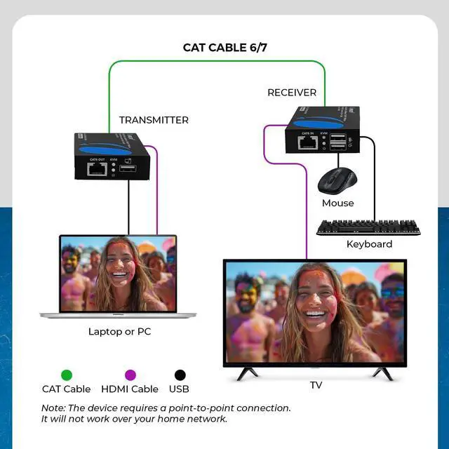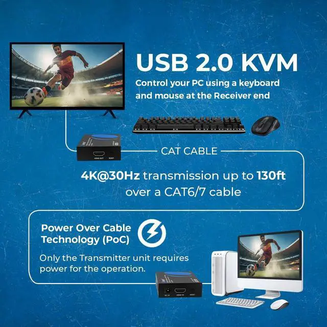 USB 1.1 KVM Extension: This feature allows you to control your PC through Keyboard/Mouse remotely at the receiver end. Full HDCP Compliant