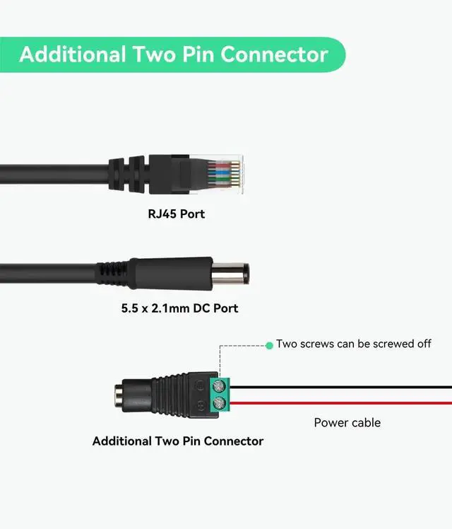 DC OUTPUT - Supports DC12V 2A power output (plug size: 5.5 x 2.1 mm), powering non-PoE device; also comes with a DC 12V connectors for connecting devices of different DC port.
