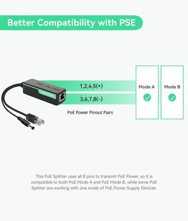 SURGE PROTECTION - Reaching 4KV surge protection, the PoE ports owns the capacity to keep the PoE splitter cable from lightning strikes and other electrical surges, offering reliable performance even in some harsh environments.