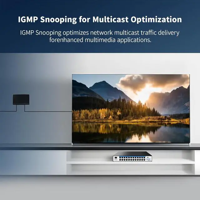 Advanced Features for Ultimate Control: Automatic detection of network cable quality, Enjoy precision bandwidth Control, QoS optimization, 802.1Q VLAN support, static MAC addressing, storm control, port mirroring, auto MDI/MDI-X, IEEE 802.3X full-duplex flow control and Backpressure half-duplex flow control, and more. Our 24 ports gigabit smart managed switch gives you the power to customize your network.