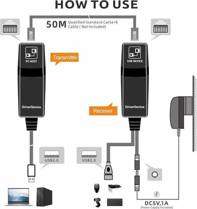 Remote Access And Control: USB over ethernet extender allows you to connect a single USB 2.0 device to a computer located up to 165 ft / 50 m away. This enables easy remote access and control of USB devices without the need for physical proximity
