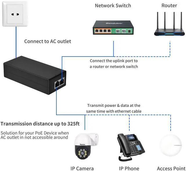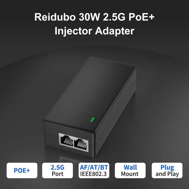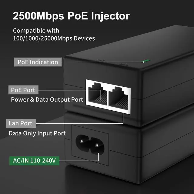 2.5Gb PoE+ Injector Adapter 30W 48~55V, IEEE 802.3at/af Compliant, Converts Non-PoE to PoE Network, 100/1000/2500Mbps RJ45, Up to 328 ft, Plug & Play