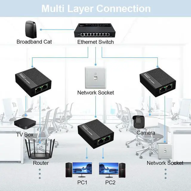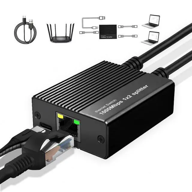 Compatible with CAT5 to CAT8 cables, our Ethernet Splitter works with routers, hubs, and smart TVs. While an Ethernet Switch needs extra ports, this Ethernet Cable Splitter is your go-to Internet Switch for instant dual connectivity. Power it via USB and enjoy!