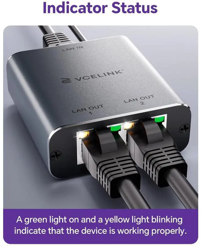 Stop wrestling with your router's limited ports! This compact lan splitter is your instant solution for connecting two essential wired devices to a single network jack, delivering full, blazing-fast 1000Mbps speeds to both simultaneously. Picture this: your gaming PC and work laptop running demanding online tasks in your home office without a hiccup. Or your smart TV streaming the big game in 4K while your game console downloads the latest title update in the living room no more swapping cables or sacrificing performance. It's perfect for dorm rooms where you and your roommate both need rock-solid wired connections, or for adding that extra security camera near your front door without running back to the router. Setup couldn't be more straightforward. Just plug it into your existing router or wall port, connect the included power adapter (no hunting for one!), and plug in your two devices using standard Ethernet cables. Within seconds, you're good to go no confusing software or tech headaches. Six clear indicator lights instantly show you everything's connected and running smoothly. Worried about interference from your Wi-Fi router, smart speaker, or other gadgets? The sleek, full aluminum housing actively blocks electronic noise, ensuring your connection stays stable and reliable for lag-free video calls, smooth gaming, and uninterrupted movie nights, whether you're in a busy apartment or a home packed with devices. Compatible with virtually anything sporting an RJ45 port connect your ADSL modem, existing network switches, computers, printers, smart TVs, streaming boxes, gaming consoles, home surveillance systems, or even extend wired access to a wireless access point. We stand behind it with hassle-free lifetime support; if you ever have a question, reach out anytime, and our team is committed to helping you resolve it promptly. Get back to what matters reliable, high-speed wired internet for all your crucial devices.