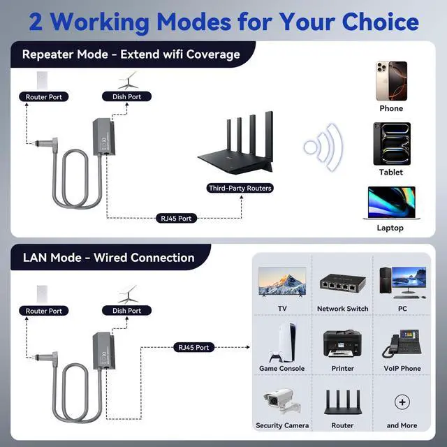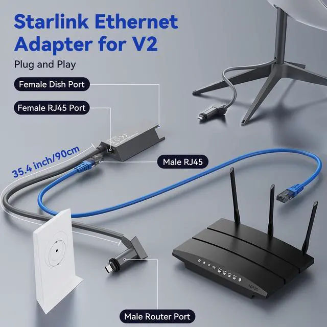 Compatible with Starlink V2 Ethernet AdapterThe Starlink V2 Ethernet adapter is specifically designed to connect directly to the Starlink Actuated Gen 2/V2 Router, providing a reliable and efficient wired connection. Ideal for users seeking a stable, high-performance internet connection for their Starlink Actuated Gen 2 setup.