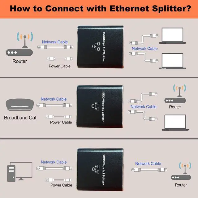 Ethernet Splitter 1 to 2: Our WrixWric 1000Mbps Gigabit Ethernet cable splitter support 2 computers to share an Ethernet cable at the same time with the USB power cable. Through this RJ45 network splitter, can solve the connection problems caused by the insufficient cabling, expand your extra network ports. 2 Devices Network Simultaneous!