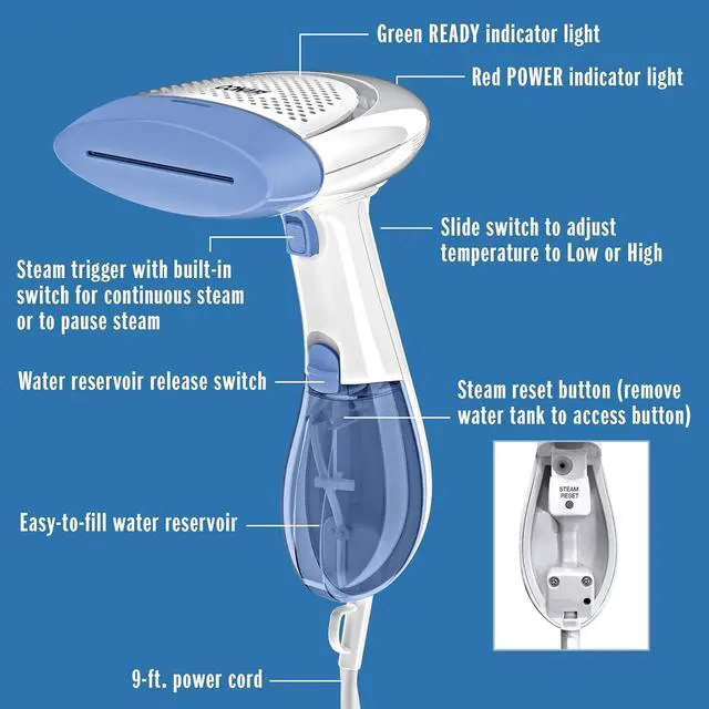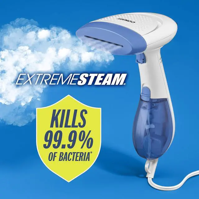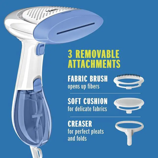 Skip expensive dry cleaning services and get convenient and fast professional results at home with the Conair GS23 Extreme Steam Handheld Fabric Steamer with Dual Heat! 1200 watts of power give you concentrated steam in seconds for a 30 percent hotter steamer that covers 5 times as much surface area. Effective on all fabrics, liners and drapes, this high quality steamer includes three removable attachments that give you versatility for all your steaming needs.