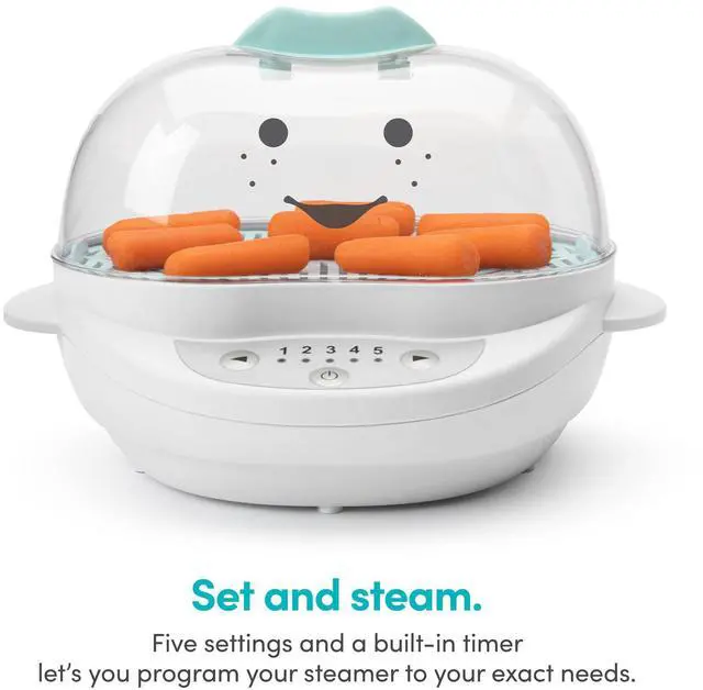 With 5 steam settings and a built in timer, you can easily cook fresh fruits, vegetables, and more in minutes. Homemade baby food made simply and quickly.
