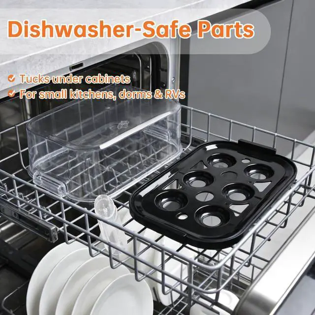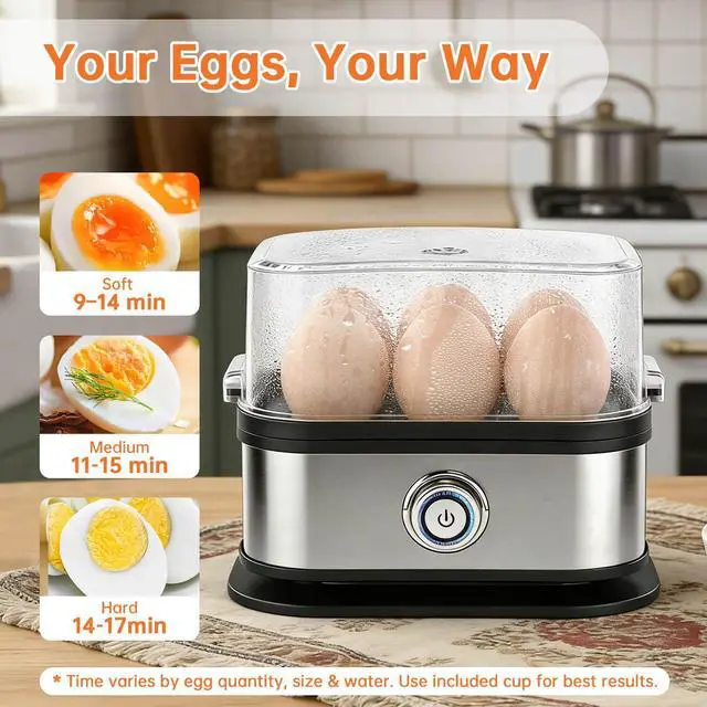 Yes! The egg tray and heating plate are designed for easy cleaning. Simply wipe the base with a damp cloth (never submerge in water) and wash the plastic tray in warm soapy water or the top rack of your dishwasher.