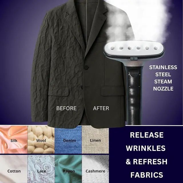 COMMERCIAL-GRADE PERFORMANCE Engineered for heavy-duty steaming, it effectively removes wrinkles from fabrics. Ideal for delicate to thick materials, including silk, cotton, wool, polyester, upholstery, and curtains.