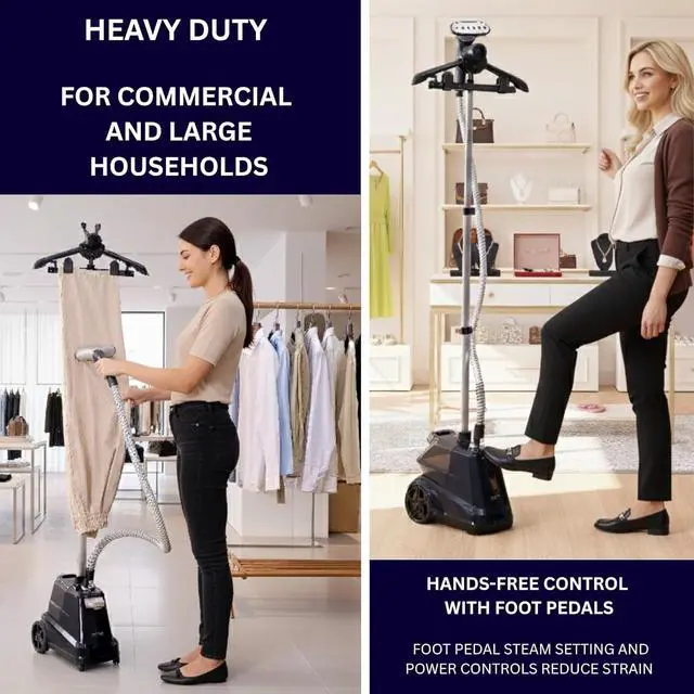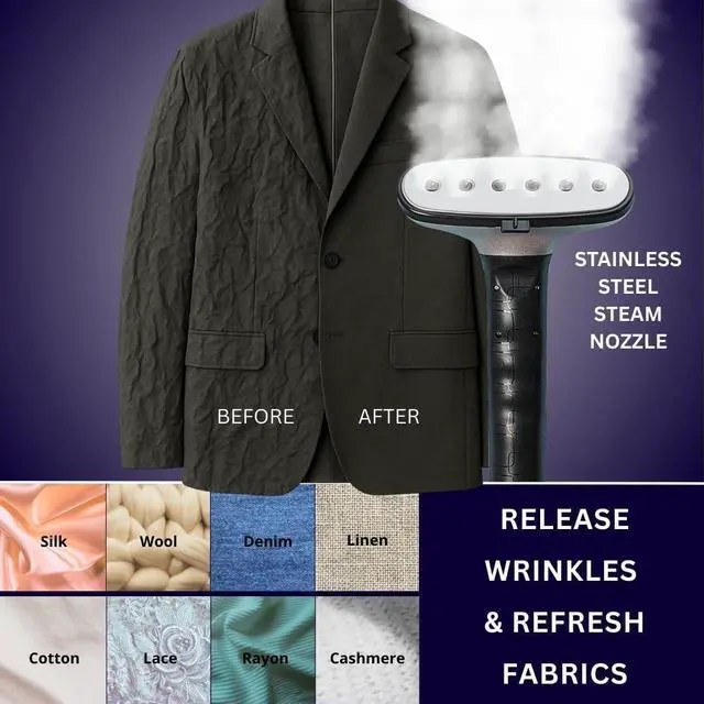 COMMERCIAL-GRADE PERFORMANCE Engineered for heavy-duty steaming, it effectively removes wrinkles from fabrics. Ideal for delicate to thick materials, including silk, cotton, wool, polyester, upholstery, and curtains.
